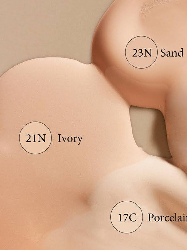 [#17C Porcelain] Purified Water, Cyclopentasiloxane, Titanium Dioxide, Ethylhexylmethoxycinnamate, Dipropylene Glycol, Methyl Trimethicone, Zinc Oxide, Polymethyl Methacrylate, Butylene Glycol, Lauryl PEG-8 Dimethicone Ticone, Phenylbenzimidazole Sulfonic Acid, Niacinamide, Nylon-12, Tromethamine, Cetyl PEG/PPG-10/1 Dimethicone, Sodium Chloride, Propanediol, Glyceryl Polymethacrylate, Sorbi Tansesquioleate, Purslane Extract, Panthenol, Disiloxane, Yellow Iron Oxide, Disteadimonium Hectorite, Propylene Glycol, Sodium Benzoate, Hydrogendimethicone, Lauroyllysine, Tocopheryl Acetate, Trimethylsiloxysilicate/Dimethicone Crosspolymer, Aluminum Hydroxide, Dimethicone Crosspolymer, Red Iron Oxide, Triethoxycaprylylsilane, Potassium Sorbate, Beeswax, Glycerin, Glycerin Extract, Polyhydride Roxystearic Acid, Adenosine, Sodium Palmitoylproline, Disodium EDTA, Ethylhexyl Palmitate, Isopropyl Myristate, Isostearic Acid, Lecithin, Propylene Carbonate, Black Iron Oxide, Polyglyceryl-3 Polyricinoleate, Hyaluronic Acid, Hydrolyzed Hyaluronic Acid, Sodium Hyaluronate, 1,2-Hexanediol, Trimethylsiloxysilicate, Black Yeast Ferment, Cotton Extract, Seed Perdyl Extract, Alba Water Lily Flower Extract, Ethylhexyl Glycerin, Black Western Truffle Extract, Fragrance [#21N Ivory] Purified Water, Glycosyllium Extract, Polyhydride Oxystearic Acid, Polyglyceryl-3 Polyricinolate, Fragrance [#23N Sand] Purified Water, Sorbitansquioleate, Disteadymonium Hectorite, Hydrogen Dimethicone, Lauroyl Lysine, Trimethylsiloxysilicate/Dimethiconeol Crosspolymer, Aluminum Hydride Rockside, Glycosylated Extract, Polyhydroxystearic Acid, Iso Propyl Myristate, 1, 2- Hexanediol, Black Yeast Fermentation, Fragrance