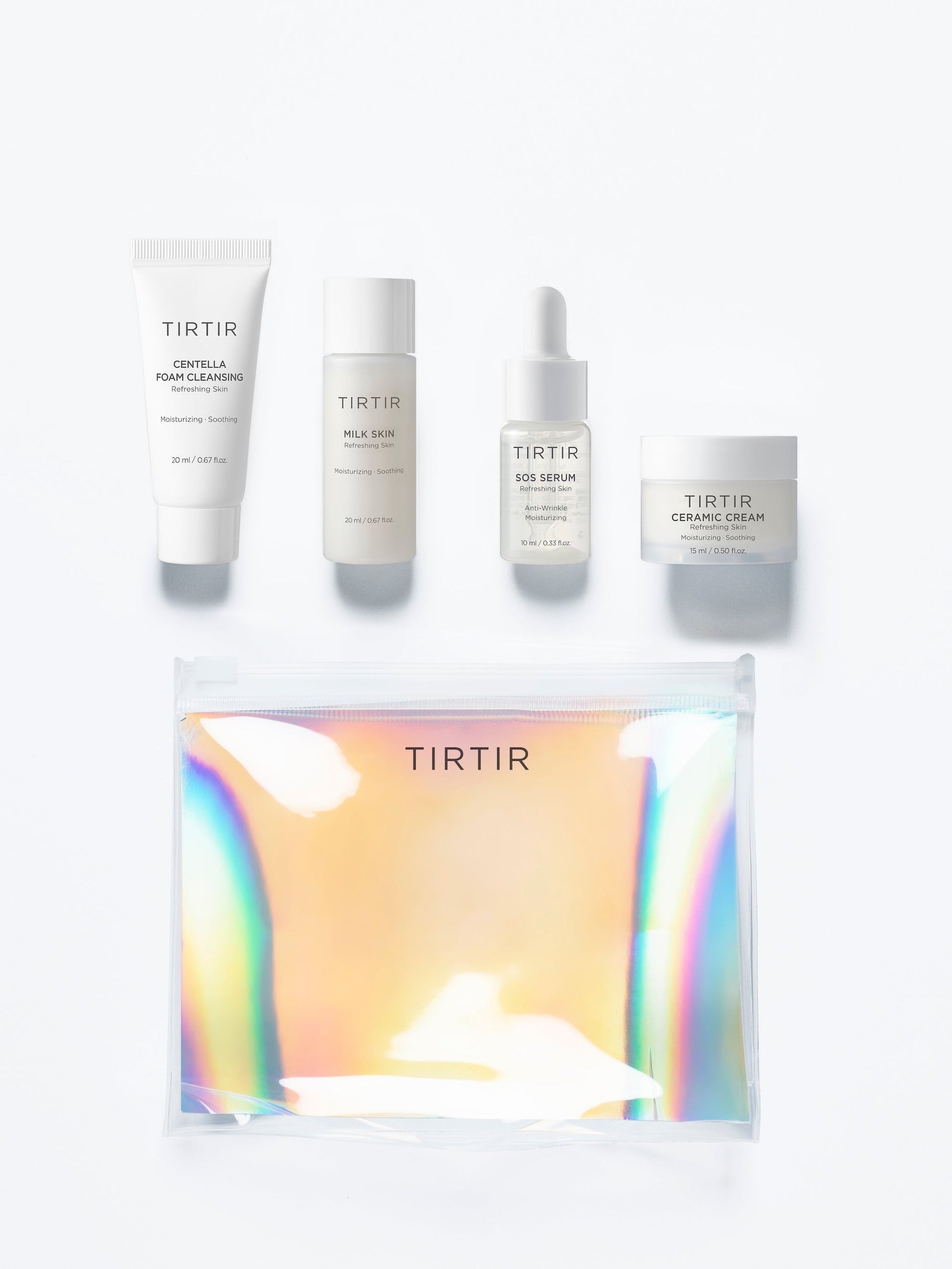 Perfect for gifting or trialing TIRTIR’s skin care products, the Glow Trial Kit contains four mini-sized products. The Centella Foam Cleansing gently dissolves dirt and excess sebum while moisturizing and soothing skin with snail secretion filtrate and cica extract. The Milk Skin Toner is infused with chamomile flower extract and polyglutamic acid to provide deep hydration and restore skin’s water-oil balance for healthy skin. The SOS Serum promotes youthful and glowy skin by increasing skin’s moisture levels and smoothing fine lines and wrinkles. The Ceramic Cream delivers deep hydration and nourishment with a soothing touch thanks to polyglutamic acid, shea butter and witch hazel extract in the formula.