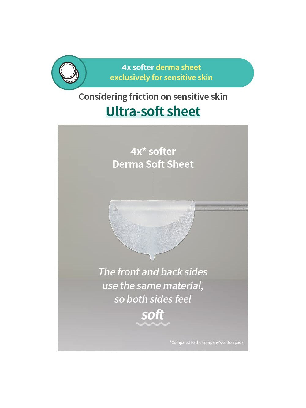 - ULTRA SOFT DERMA SHEET EXCLUSIVELY FOR SENSITIVE SKIN: By considering friction on skin, it uses Derma Soft Sheet, which is 4X softer than others. Soaked in generous amount of moisture, it's recommended for quick soothing and gentle tidying-up with no irritation before applying makeup.