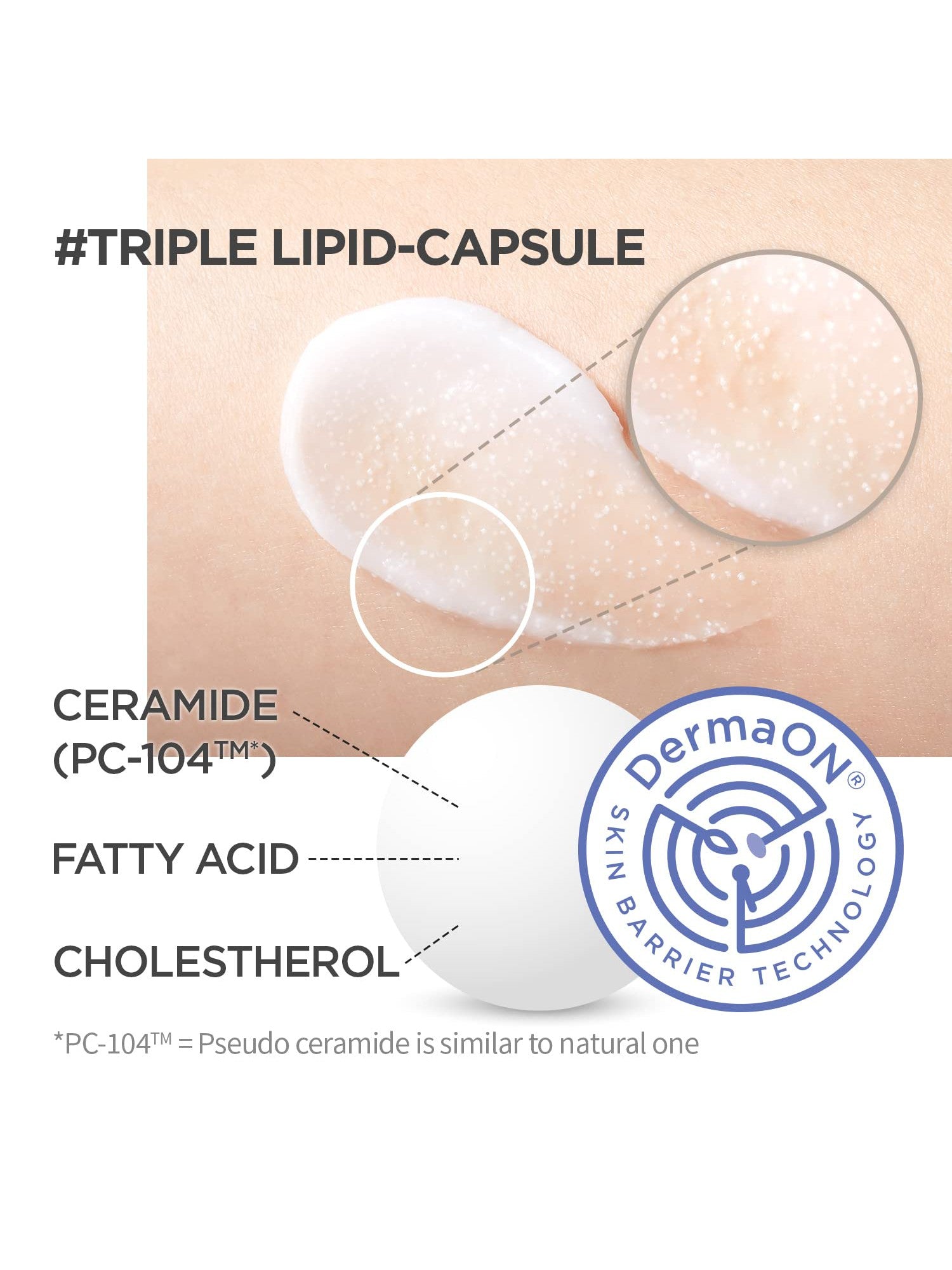 Infused with moisture capsule, ceramide, phytosphingosine and fatty acid complex to moisturize dehydrated skin and enhance skin's moisture-absorbing ability.