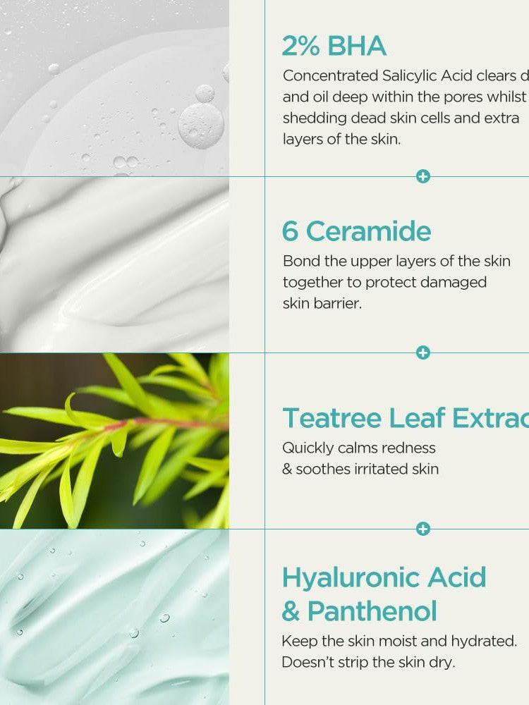 Water, Dipropylene Glycol, 1,2-hexanediol, Salicylic Acid, C12-14 Pareth-12, Octyldodeceth-16, Melaleuca Alternifolia (Tea Tree) Extract, Pentylene Glycol, Salix Alba (Willow) Bark Extract, Oenothera Biennis (Evening Primrose) Flower Extract, Ulmus Davidiana Root Extract, Pinus Palustris Leaf Extract, Pueraria Lobata Root Extract, Centella Asiatica Extract, Ficus Carica (Fig) Fruit Extract, Hydrogenated Lecithin, Sodium Hyaluronate, Sodium Citrate, Citric Acid, Xanthan Gum, Disodium Edta, Tocopherol, Ceramide Np, Butylene Glycol, Dimethylsilanol Hyaluronate, Hydrolyzed Sodium Hyaluronate, Hydrolyzed Hyaluronic Acid, Potassium Hyaluro nate, Hyaluronic Acid, Sodium Hyaluronate Crosspolymer, Hydroxypropyltrimonium Hyaluronate, Sodium Hyaluronate Dimethy silanol, Sodium Acetylated Hyaluronate,
