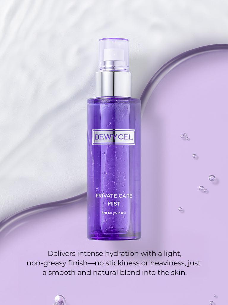 The Dewycel Private Care Mist is a scientifically formulated facial mist designed to deliver targeted skin renewal and deep hydration throughout the day. Developed with bioactive ingredients commonly found in high-grade ampoules, this fine, micro-particle mist penetrates the skin barrier to provide instant moisture retention, calming relief, and antioxidant defense.