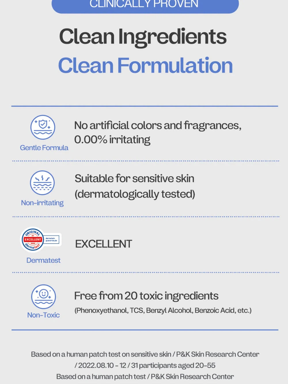 • Derma-tested formula that excludes artifiical colorings and fragrance.