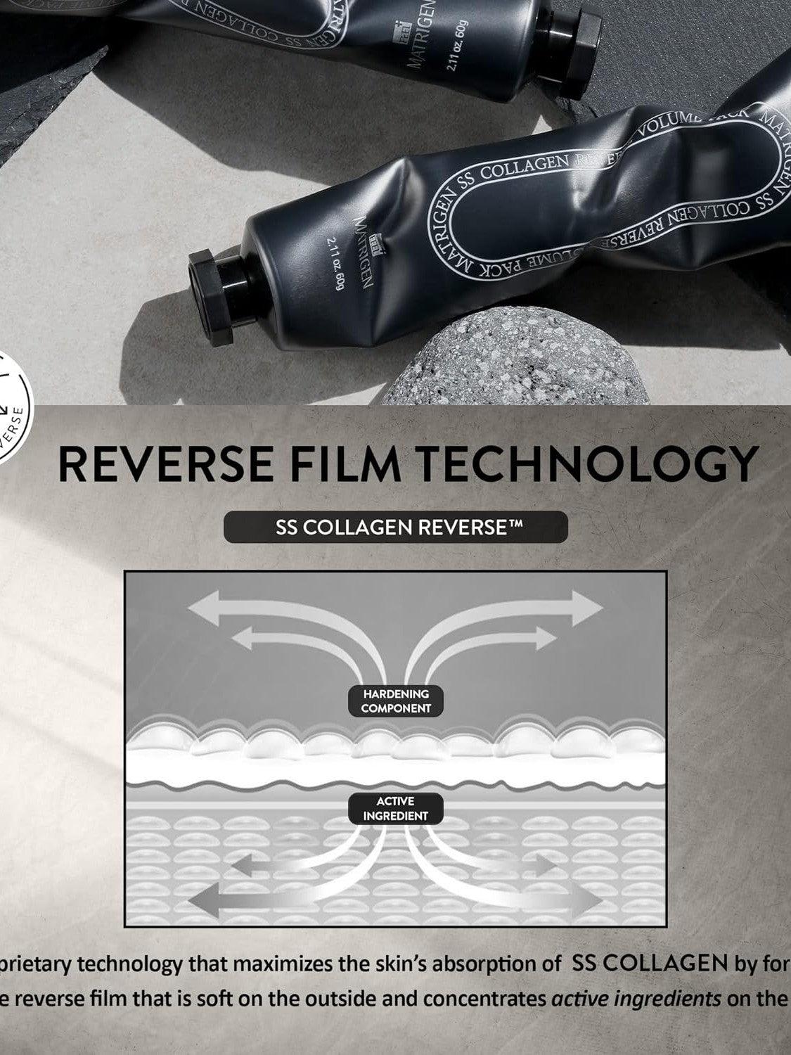 A proprietary technology by Matrigen that maximizes the skin's absorption of high-quality ingredients, including SS COLLAGEN(Type#1), Exosomes and, Vitamin K. by forming a double reverse film that is soft on the outside and concentrates active ingredients on the inside. Only 30-40 minutes needs to see this magical works for your skin.