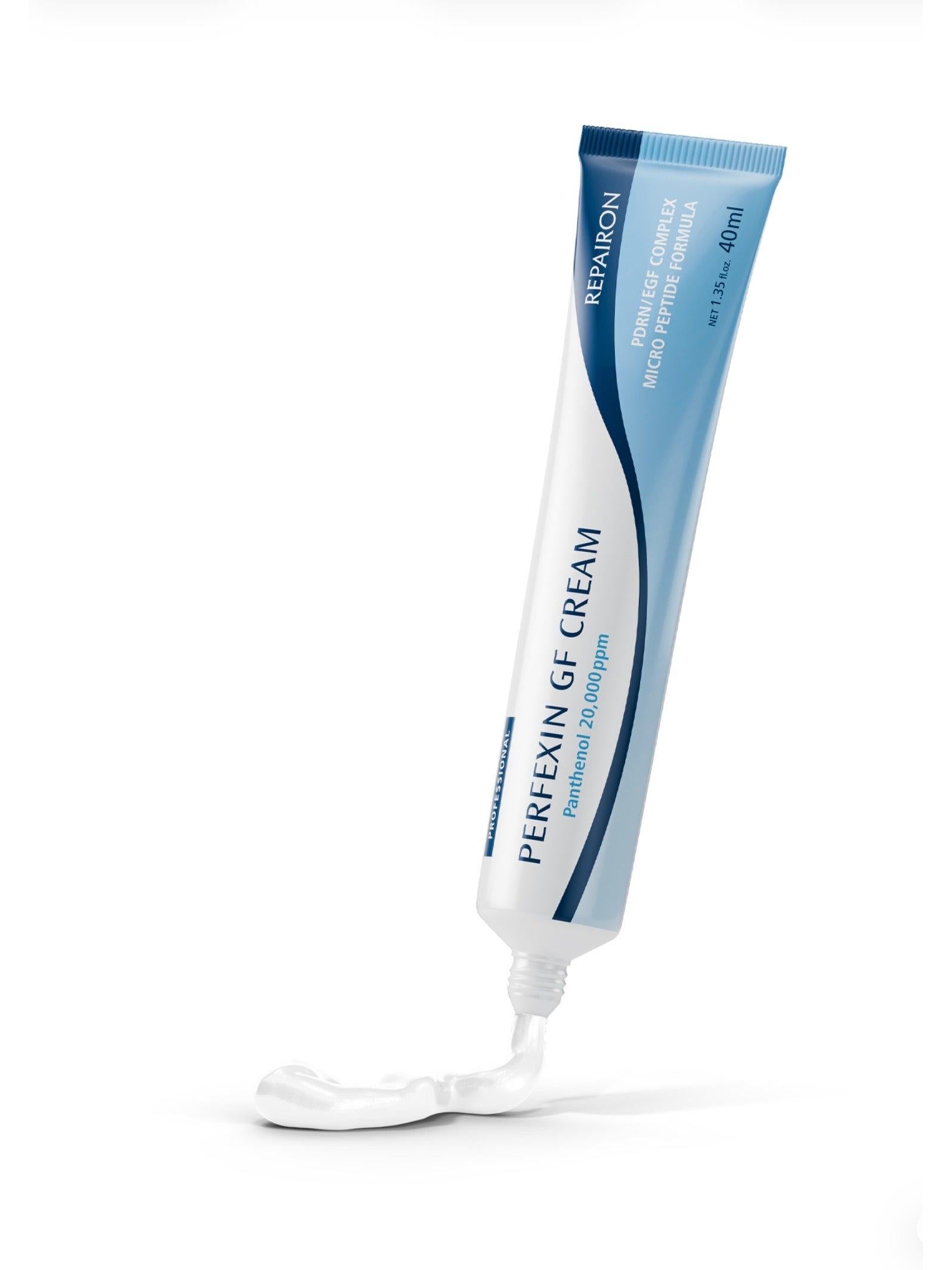 Repairon Perfexin® GF Cream is a professional-grade recovery formula designed to support the skin barrier while delivering deep, layered hydration. Powered by a PDRN / EGF complex and micro peptides, this advanced cream helps improve the appearance of stressed or weakened skin.