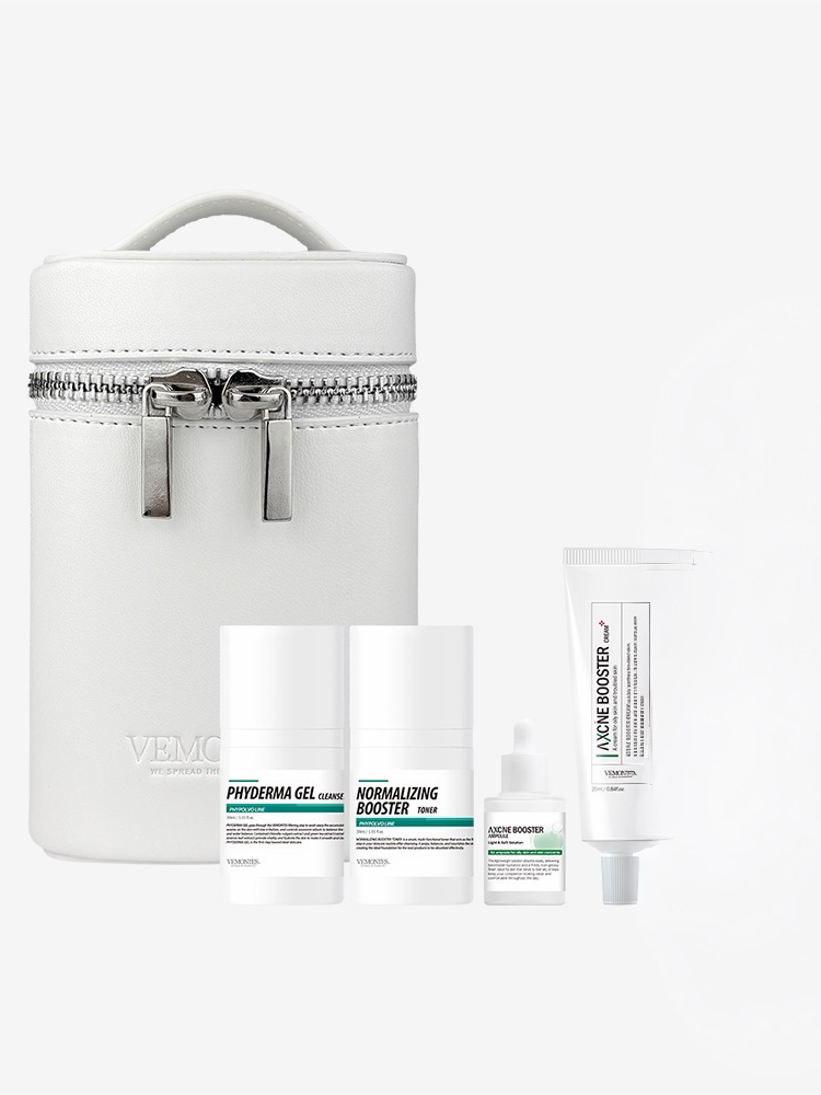 Perfect for first-time Vemontes users, those experiencing breakouts or congestion, or anyone seeking a simplified yet effective problem-skin routine — all housed in a sleek, portable pouch for convenient use at home or on the go.