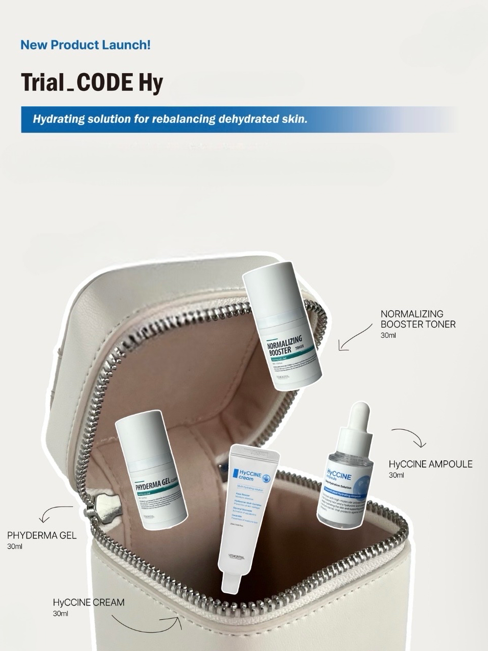 Formulated with multi-layer hydrating actives and barrier-supporting ingredients, Trial_CODE HY helps improve moisture retention, relieve tightness, and restore skin comfort from within. The lightweight yet intensive textures absorb effortlessly, making this routine ideal for daily use, travel, or short-term skin recovery periods.